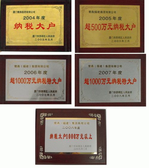 2009年3月3日,廈門市湖里區(qū)人民政府召開“2008年度湖里區(qū)納稅先進企業(yè)表彰會”,鷺燕集團再次榮獲“納稅超千萬大戶”榮譽稱號,這是鷺燕集團自2006年以來連續(xù)三年成為“納稅超千萬大戶”。