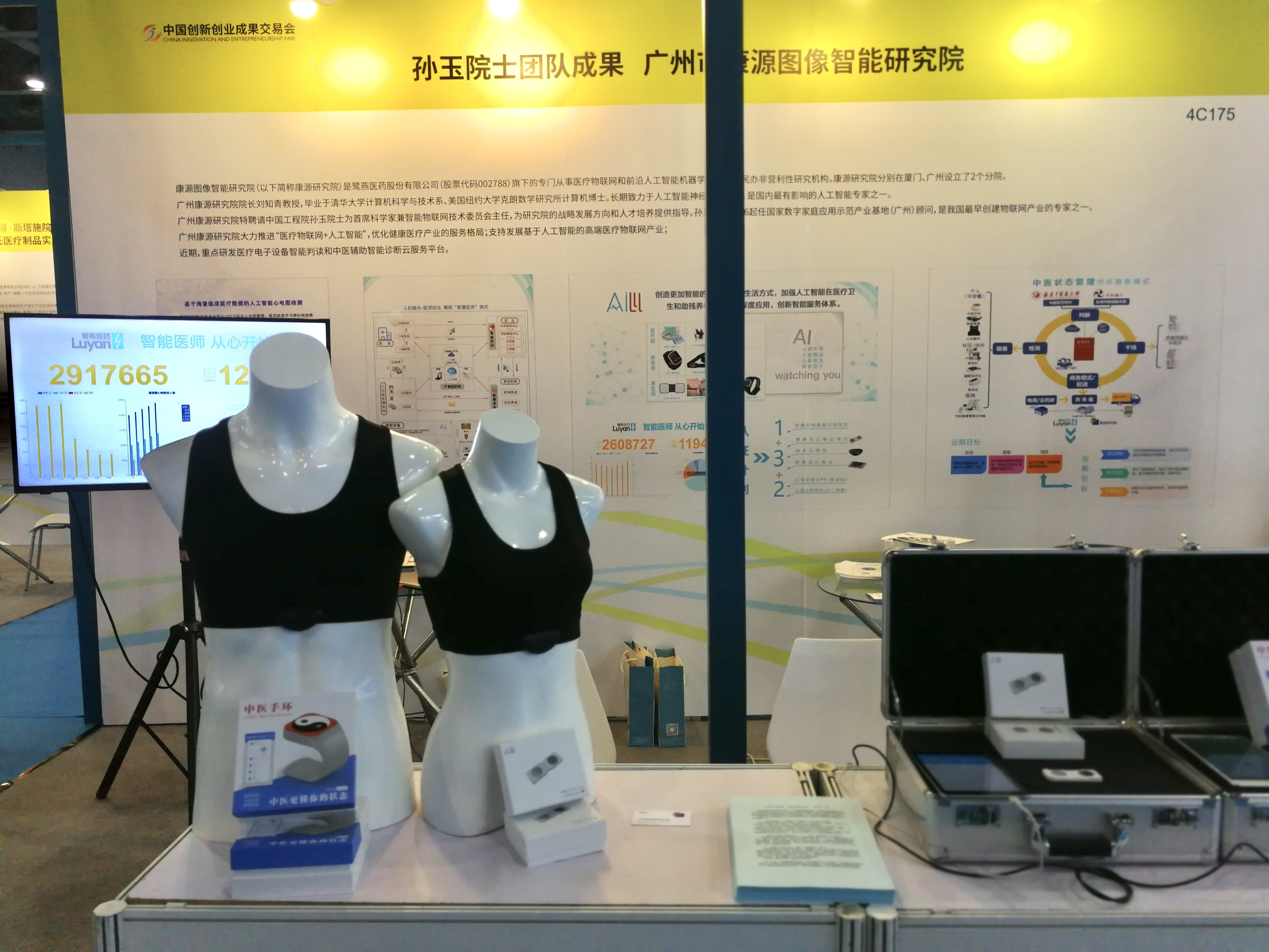 在本屆成果交易會上,康源研究院團隊展出了自主研發(fā)的人工智能便攜式心電系列產(chǎn)品,包括便攜式心電記錄儀、動態(tài)心電儀和中醫(yī)手環(huán)等,并現(xiàn)場演示了心電檢測、心電判讀、中醫(yī)狀態(tài)管理閉環(huán)式服務模式。