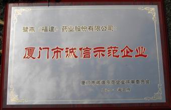 “2008 —2009年度廈門誠信示范企業(yè)”是廈門首個誠信企業(yè)評選活動。本活動由廈門市誠信促進會、廈門市企業(yè)和企業(yè)家聯(lián)合會、各級政府機關(guān)等28個相關(guān)部門聯(lián)合開展,組委會本著“公開、公正、公平”的原則首次在全市范圍內(nèi)共同開展誠信示范企業(yè)的評選。經(jīng)過一系列激烈的競爭及組委會的嚴格評選,本企業(yè)最終獲得了 “2008—2009年度廈門市誠信示范企業(yè)”的榮譽稱號。
