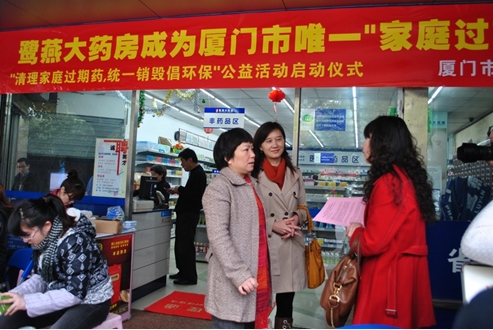 2012年3月15日上午,由廈門市食品藥品監(jiān)督管理局和廈門鷺燕大藥房有限公司聯(lián)合發(fā)起的“清理家庭過期藥、綠色健康倡環(huán)保”公益活動啟動儀式在鷺燕大藥房前埔分店舉行。本次活動的主旨是倡導(dǎo)健康環(huán)保,同時給廣大人民群眾營造一個安全健康的用藥環(huán)境,有效減少因過期藥品使用給家庭帶來的健康傷害。